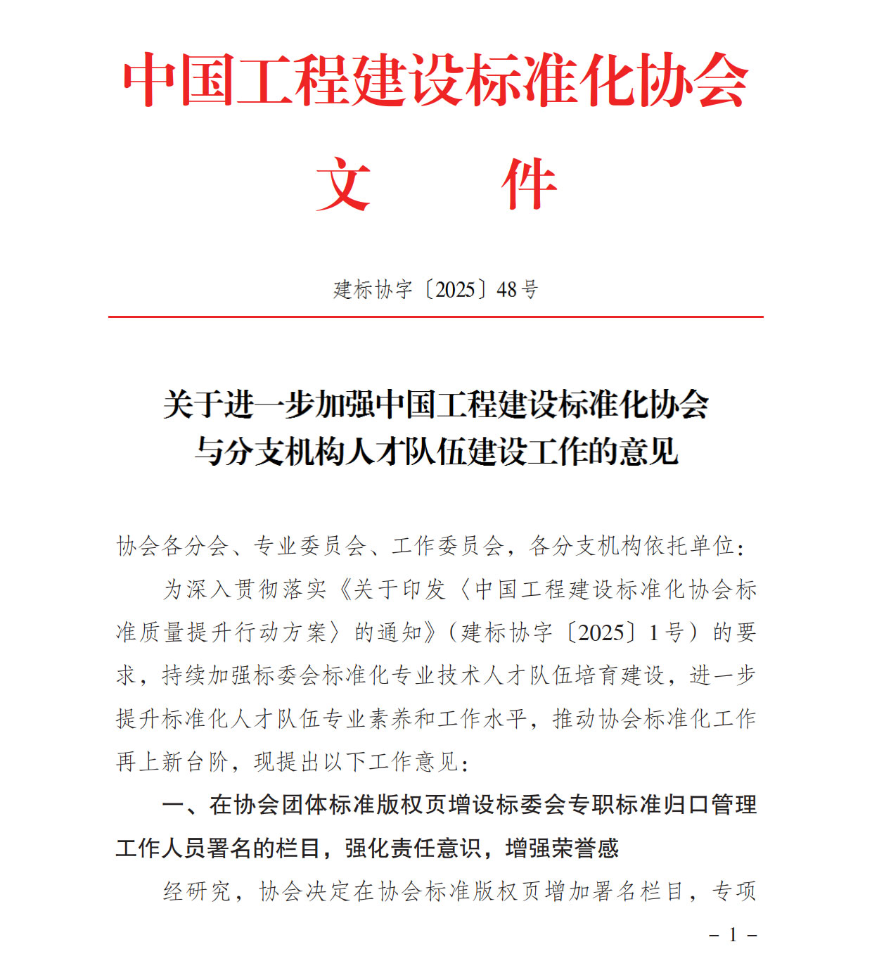 关于进一步加强中国工程建设标准化协会与分支机构人才队伍建设工作的意见